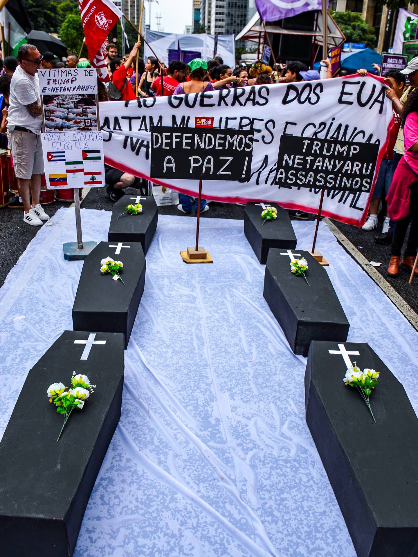 No Rio de Janeiro, milhares de manifestantes ocuparam a orla de Copacabana, onde cruzes foram fincadas na areia com o lema “Parem de nos matar”, em memória das vítimas de feminicídio. O protesto ocorreu no mesmo bairro onde, semanas antes, uma adolescente de 17 anos foi vítima de estupro coletivo, caso que provocou indignação nacional.