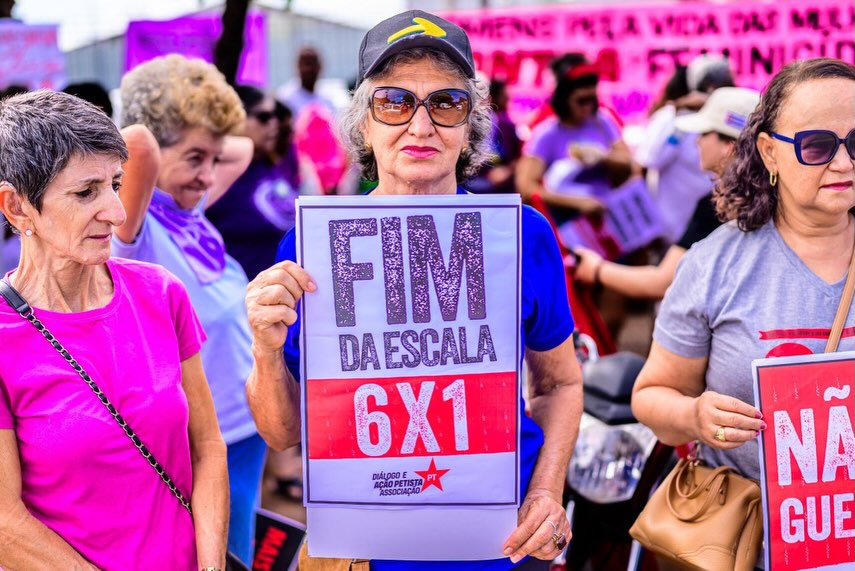 Em São Paulo, milhares de mulheres marcharam pela Avenida Paulista mesmo sob chuva forte, exigindo medidas concretas contra a violência de gênero e defendendo pautas como o fim da escala de trabalho 6×1, frequentemente criticada por ampliar a sobrecarga das mulheres trabalhadoras.