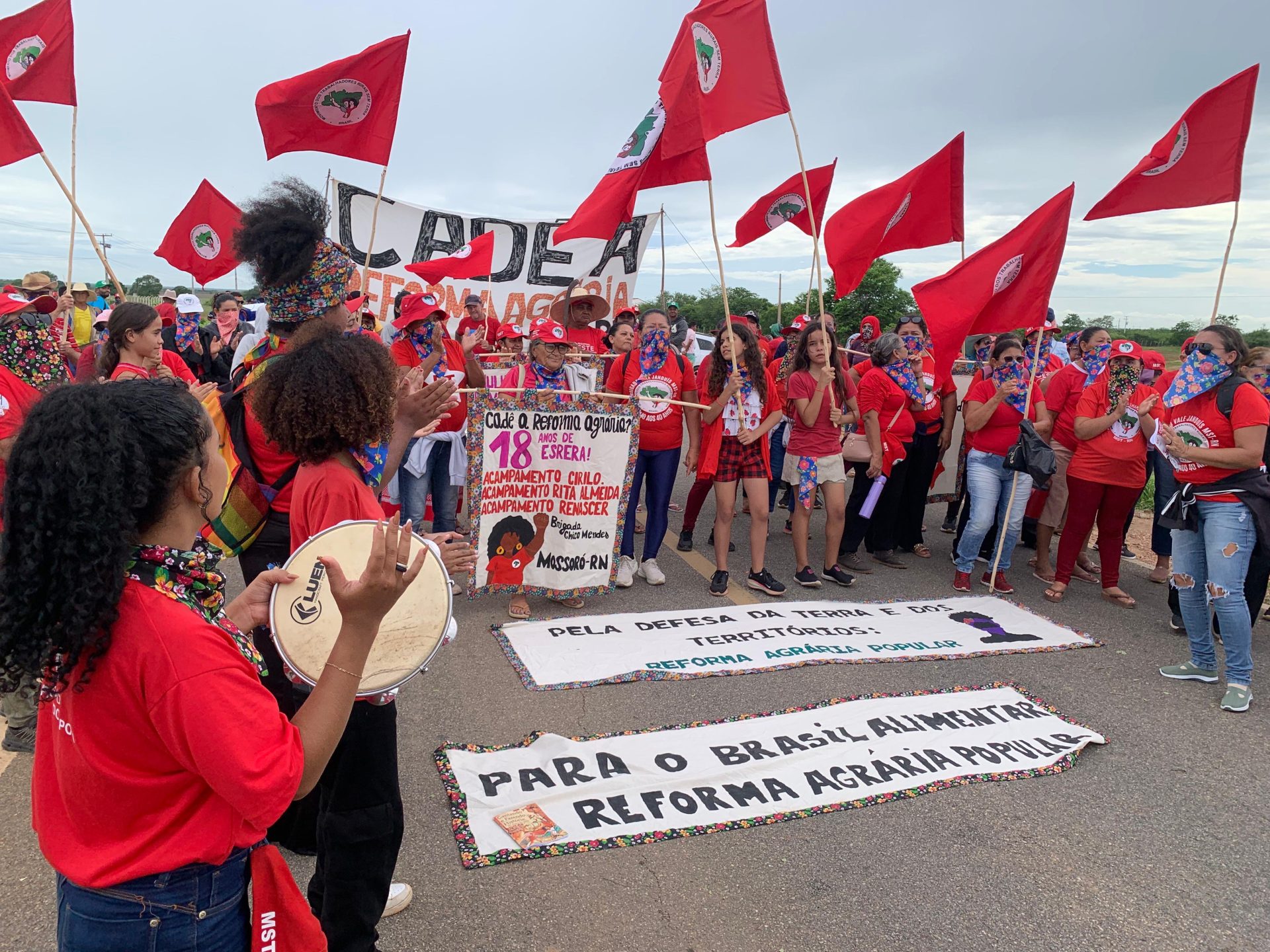 As manifestações ocorreram na BR-101, no município de Touros, no litoral norte do estado, e na BR-405, na região da Chapada do Apodi, reunindo camponesas que reivindicam o cumprimento da pauta da Reforma Agrária, junto ao Governo do Estado e denunciam os impactos provocados por megaprojetos de energia eólica nos territórios rurais.