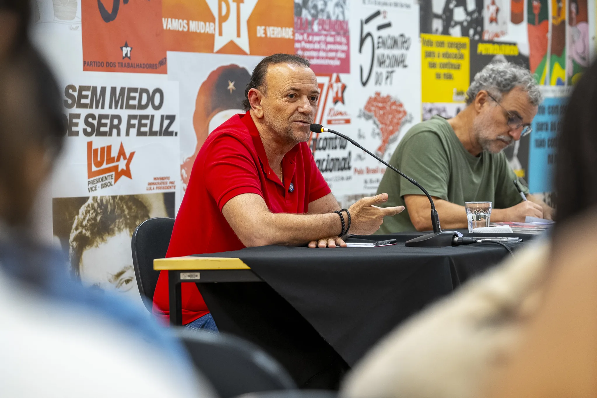 Na tarde de sexta-feira (20), o coordenador-geral do Congresso e secretário nacional de Comunicação do PT, Jilmar Tatto, e o secretário nacional de Organização, Laércio Ribeiro, dialogaram com os participantes sobre os mecanismos de democracia interna do partido e o que está em jogo na reeleição do presidente Lula.
