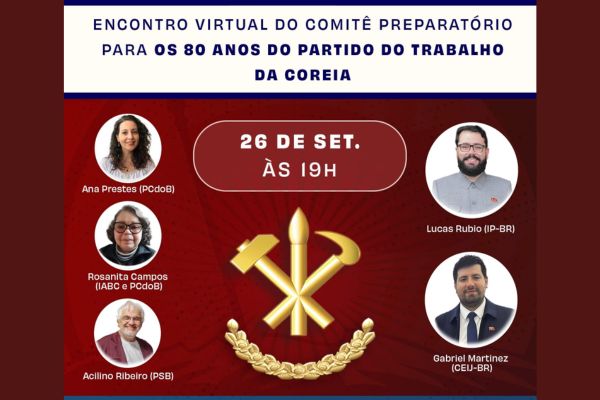 O Instituto Paektu – Brasil, em parceria com organizações amigas, realiza nesta sexta-feira (26) o encontro virtual do Comitê Preparatório Brasileiro para os 80 anos do Partido do Trabalho da Coreia (PTC). Criado em 1945, o PTC é uma das mais antigas organizações políticas do mundo, e sua trajetória será lembrada por meio de atividades organizadas em diferentes países.