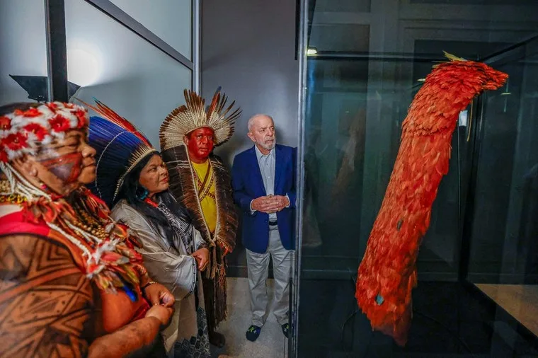 Manto Tupinambá recuperado em 2024 pelo governo brasileiro junto à Dinamarca (Foto: Ricardo Stuckert)