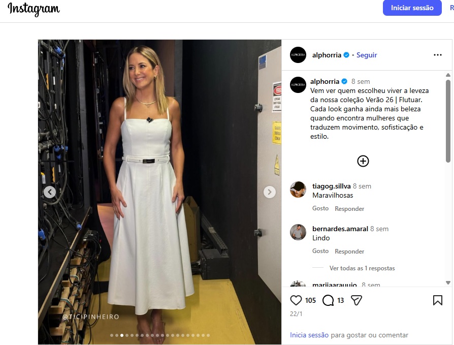 Angélica e Ticiane Pinheiro aparecem entre as celebridades que usam as roupas da Alphorria em um post nas redes sociais da marca divulgando a sua coleção verão 2026. A Repórter Brasil procurou ambas as apresentadoras, mas não obteve respostas até o fechamento da reportagem. O espaço ficará disponível para futuras manifestações.