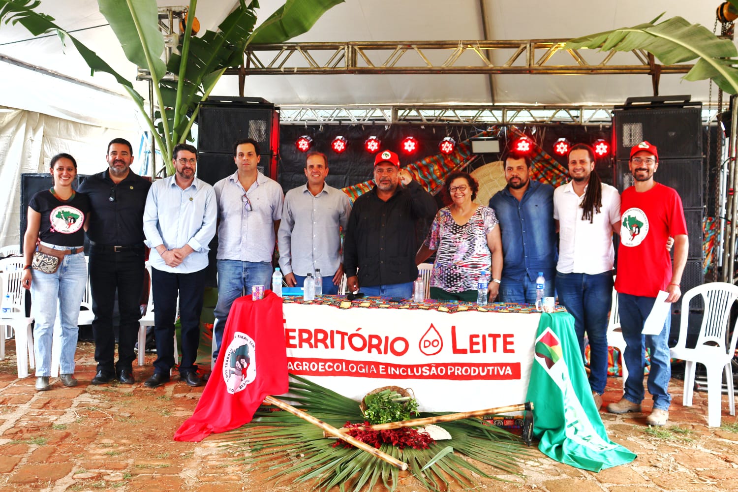 Na manhã desta quinta-feira (05), no assentamento Dênis Gonçalves, em Goianá (MG), foram lançados dois projetos estratégicos para a agropecuária familiar e a produção leiteira nos territórios da Reforma Agrária: o projeto “Treinamento de Médicos(as) Veterinários(as) em Transferência de Embriões” e o projeto “Territórios do Leite: Agroecologia e Inclusão Produtiva” – eixo do programa Terra Mesa.