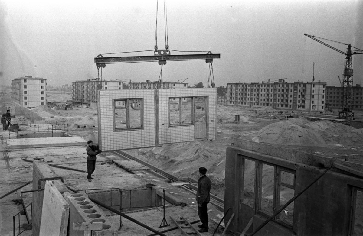Construção de prédio pré-fabricado na Ucrânia soviética nos anos 1960 (Foto: Arquivo/TsDKFFA Ukrayiny)