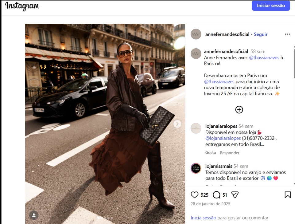 Nas redes sociais, a influenciadora Thassia Naves aparece em vídeos provando peças da Anne Fernandes, além de dar nome a ítens da coleção, como vestidos e jaquetas. Em um post de 3 de março de 2026, ela prova um vestido da marca para ir a um jantar em um restaurante asiático de Orlando.