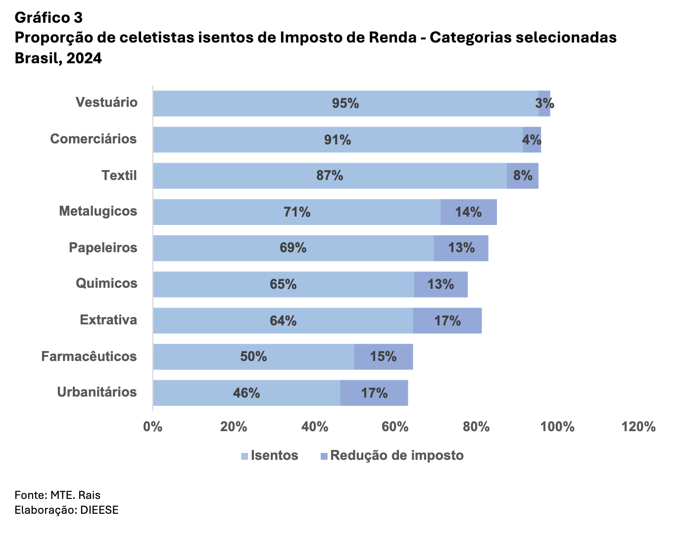 No comércio, reparação de veículos e motocicletas, o impacto também é expressivo. Aproximadamente 8,5 milhões de comerciários, o equivalente a 91% da categoria, deixam de pagar Imposto de Renda.
